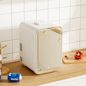 White 12L Mini Fridge with LED Mirror Door - White by Livingandhome