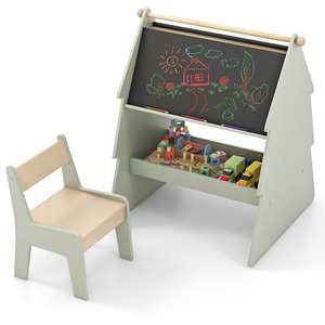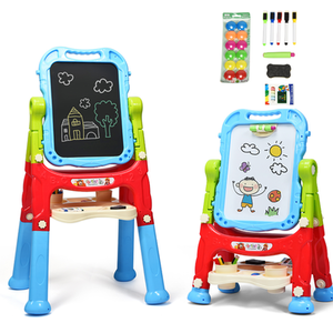 Kids Art Easel Double Sided Chalkboard Whiteboard - Blue by Costway