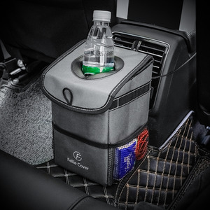 Car Trash Bin Bag with Side Pockets - Grey by Livingandhome