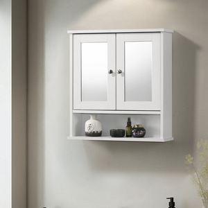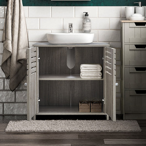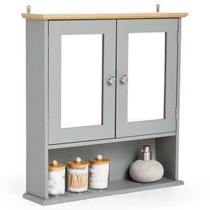 Bathroom Cabinet with Towel Bar - Grey by Costway