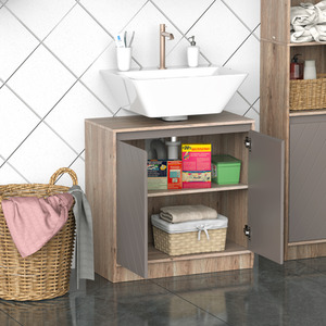 HOMCOM Under-Sink Storage Cabinet with Adjustable Shelf - Grey and Oak by HOMCOM