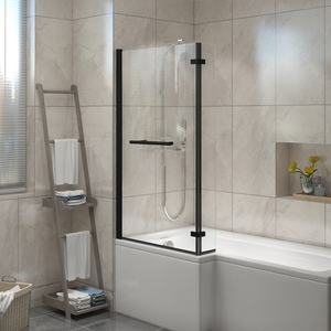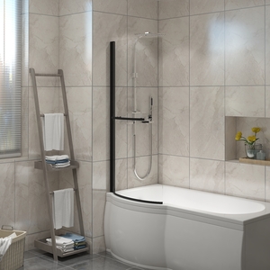 Curved Pivot Bath Screen Panel for P-Shaped Bath - Black