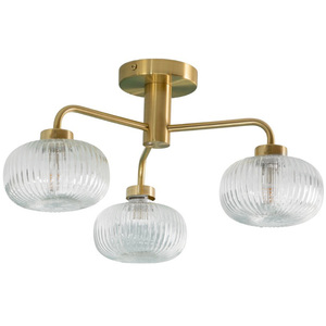 Amaia 3 Way IP44 Bathroom Ceiling Light with Ribbed Glass Shade - Gold by ValueLights