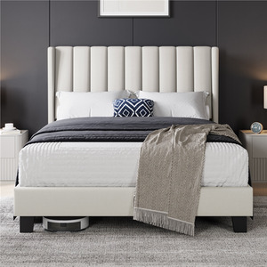 Yaheetech Upholstered Bed Frame with Channel Tufted Headboard - Beige / Double by Yaheetech