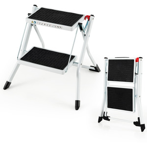 Portable Compact Folding Non Slip Metal Step Ladder - 4 Step White / 124.5cm by Gr8 Home