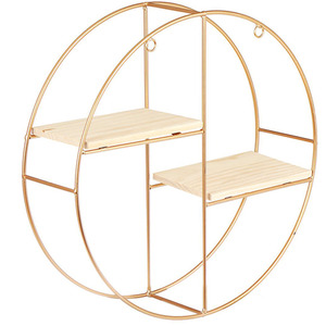 Double Circle Wall Mounted Decorative Display Shelf - Gold / 37cm by Livingandhome