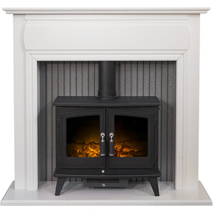 Adam Florence Fireplace in White with Woodhouse Electric Stove in Black, 48 Inch - White by Adam