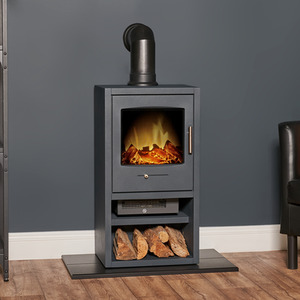 Adam Bergen XL Electric Stove in Charcoal Grey with Angled Stove Pipe in Black - Grey by Adam