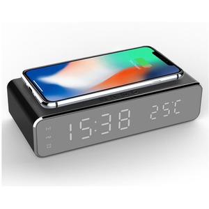 Multi-function Desktop Alarm Clock with Wireless Charger - Black