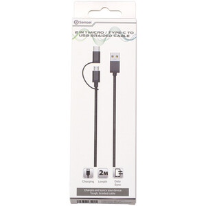 2 in 1 Micro Type C to USB Braided Cable - Black