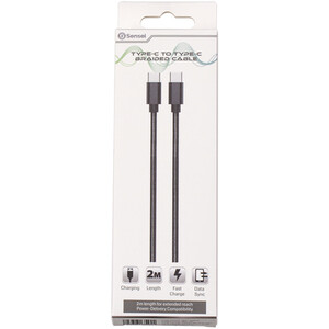 Type-C to Type-C Braided Charging Cable 2m - Black by Sensei