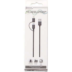 2 in 1 Micro and Lightning to USB Braid Cable - Black