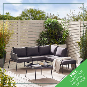 Outdoor Rattan Sofa Set - Maldives Grey Garden Corner Sofa and Table - 5 Seat - Grey by FurnitureboxUK