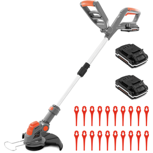 Cordless Grass Strimmer 20V 1hr Charge 30 Grass Cutting Attachments 2 Batteries - Grey by Terratek