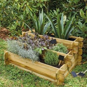 Outsunny Wooden Herb Planter Raised Bed Container - Brown by Outsunny