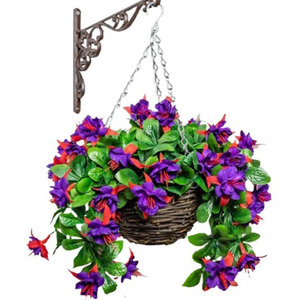 Rattan Hanging Basket of Purple Artificial Fuschia - Purple / 2 by Primrose