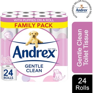Andrex Gentle Clean Puppies on Roll 2 Ply Toilet Paper, 24, 48 or 72 Rolls - 24 Rolls / x24 by Andrex