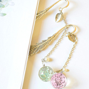 Beaded Gypsophila Dried Flower Vintage Feather Bookmark - Green