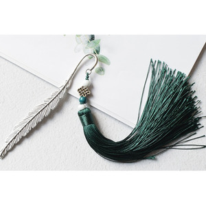 Metal Feather shape Tassel Bookmark - Green