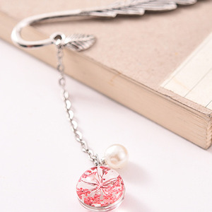 Beaded Gypsophila Dried Flower Vintage Feather Bookmark - Red