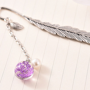 Beaded Gypsophila Dried Flower Vintage Feather Bookmark - Purple
