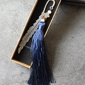 Metal Feather shape Tassel Bookmark - Blue