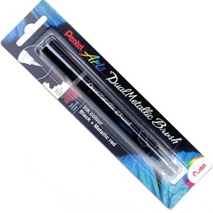 Pentel Arts - Dual Metallic Brush Pen - Metallic Ink - Single Pen - Black/Metallic Red by Pentel