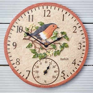 12" Robin Wall Clock - Cream,Orange,Brown by Garden Mile