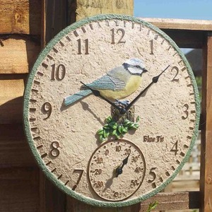 12" Blue Tit Bird Clock - Cream,Blue,Green,Brown by Garden Mile