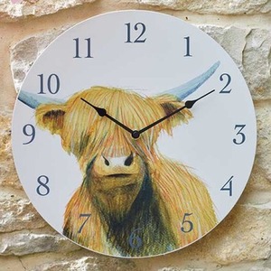 12" Highland Cow Garden Clock - Cream by Marco Paul