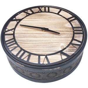 Black Large Round Metal and Wooden Clock - black by Marvells