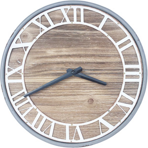 Small Round Metal and Wooden Clock - Grey frame, White numerals by Marvells