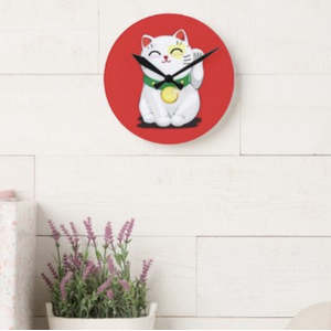 Lucky Waving Cat Wall Clock - Red by Clock Styles London
