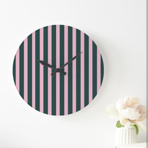 Pink striped wall clock - Pink by Clock Styles London