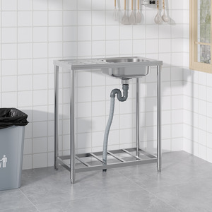 Freestanding Single-Bowl Kitchen Sink with Draining Board - Silver / 75cm by komore
