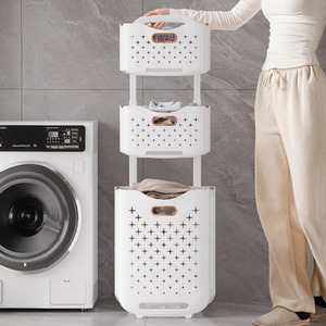 Multi Tier Foldable Laundry Baskets with Wheels - White / 115cm by lifeideas
