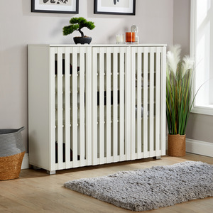 Halden Shoe Storage 3 Door Slatted Front Cabinet Unit - White by Home Source