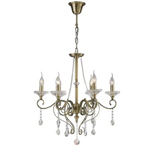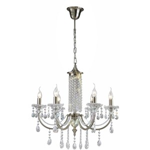 Libra Ceiling Pendant Chandelier 6 Light Antique Brass, Crystal - Antique Brass