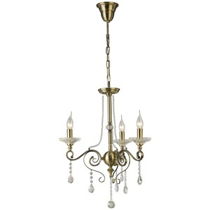 Libra Ceiling Pendant Chandelier 3 Light Antique Brass, Crystal - Antique Brass