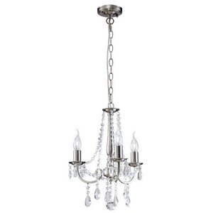 Kyra Ceiling Pendant Chandelier 3 Light Satin Nickel, Crystal - Satin Nickel