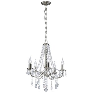 Kyra Ceiling Pendant Chandelier 5 Light Satin Nickel, Crystal - Satin Nickel