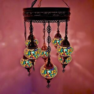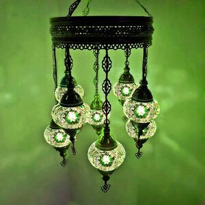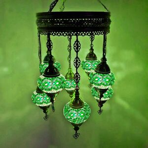 Turkish Moroccan Chandelier Glass Mosaic Ceiling Hanging Lamp ( Style - 27) - Green by WORLD HOME LIVING