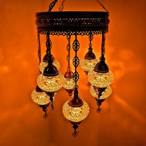 Turkish Moroccan Chandelier Glass Mosaic Ceiling Hanging Lamp ( Style - 29) - Yellow by WORLD HOME LIVING