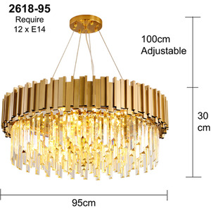 Genuine K9 SMOKY Grey Crystal Chandelier - Smoky Grey / 100cm