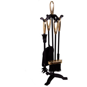 5 Piece Buxton Companion Set - Black and Brass / Brass Iron by Vida Designs