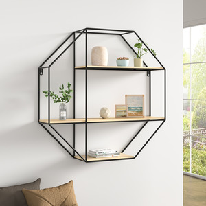 Octagonal Metal Floating Wall Display Shelf - Black by Livingandhome