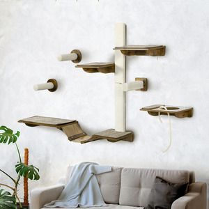 PawHut 8Pcs Cat Shelves Cat Wall Furniture D30 765V00BN - Brown by PawHut