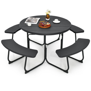 8-Person Round Picnic Bench Table Set - Black by Costway