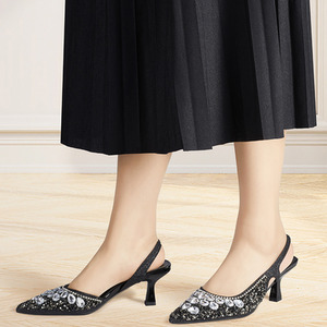 Heels Pointed Toe Slingback with Rhinestone Detail by Livingandhome