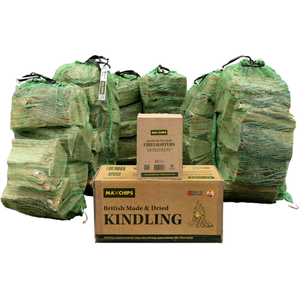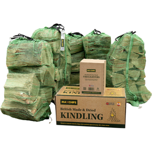 Softwood Log Nets, Box of Kindling and Firelighters Bundle - Brown / 5 Nets of Softwood Logs 1 Box of Kindling and 1 box of firelighters by Maxchips